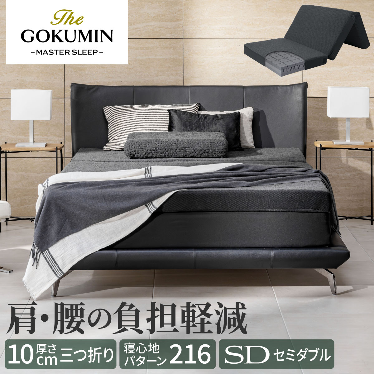 三つ折り 肩 腰 負担軽減 THE GOKUMIN マットレス 3レイヤーゾーニングマットレス 極厚10cm セミダブル 三つ折りマットレス 折りたたみ へたりにくい 高反発