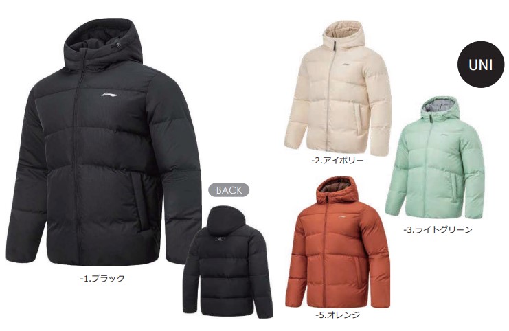リーニン バドミントン ウェア LI-NING UNI ダウンジャケット AYMT061 2024年カタログ商品