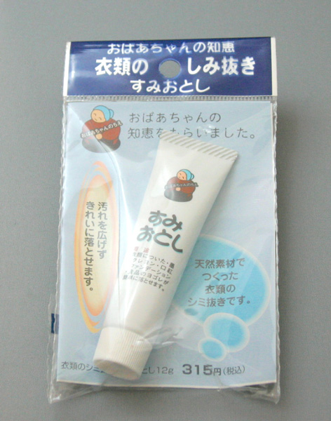 この墨おとしは、おばあちゃんの知恵をヒントにしてつくったペースト状のシミ抜き洗剤です。