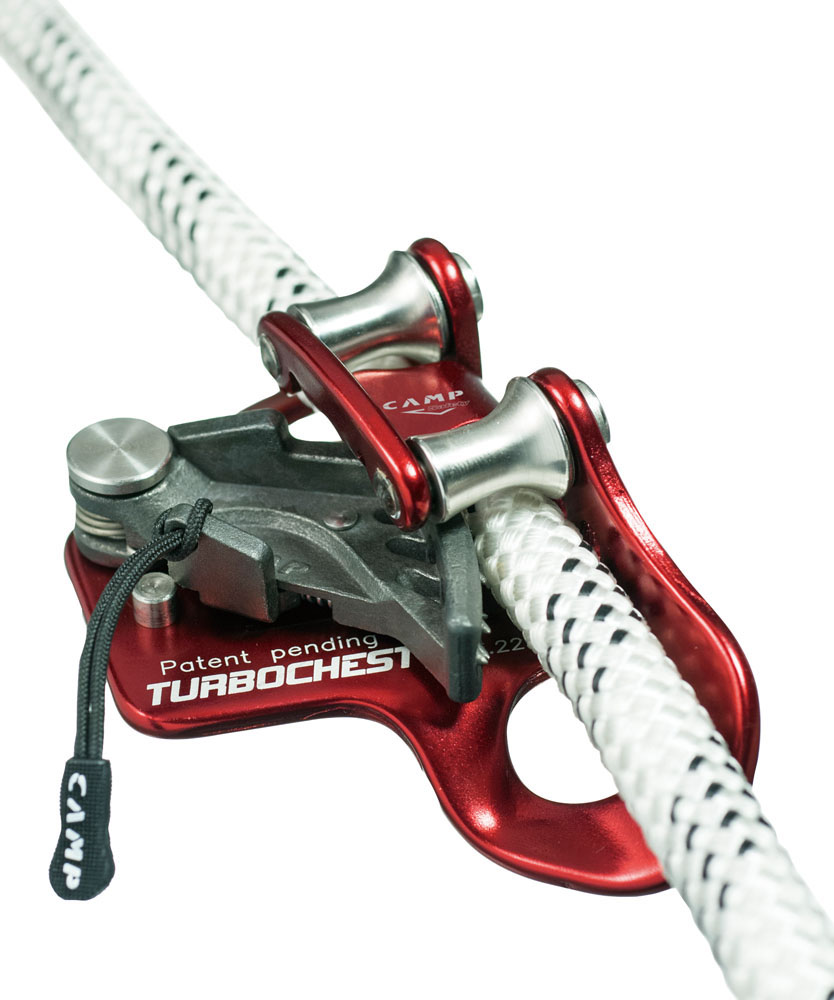 カンプ CAMP ターボチェスト 5225600 5225600 アウトドア 2つの専用ローラーを備えた革新的なチェストアッセンダー。このローラーがロープとの滑らかなインターフェースを実現します。スムーズなグライドにより登高を助けるだけでなく、ロープとの摩耗によって本体の耐久性能が下がるリスクを低減させます。しっかりとクローズするカムが振り子やトラバースの際でも本体からロープが外れません。本体とカムにセルフクリーニングホールがあり、砂やほこりがたまるのを防ぎます。アタッチメントホールは、本体とコネクターが接続しやすい形状でカムの開閉に干渉しません。開閉機構はシンプルで安全です。プルコードによって、グローブをしたままでも操作が行えます。