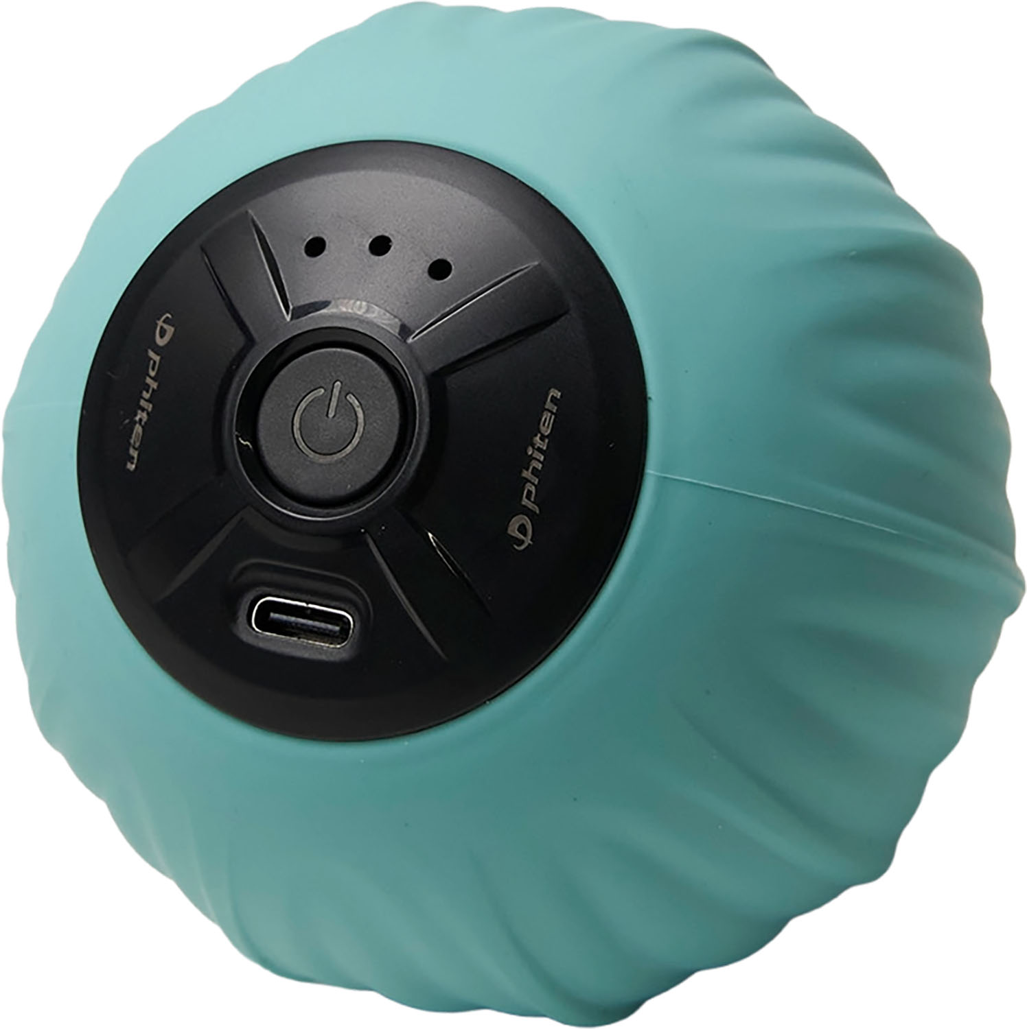ファイテン Phiten お疲れス球 ミントブルー BE800100 ここちよい振動で、ココロもカラダもリラックス。最大回転数は約 5500 回 / 分 ! 小さくてもパワフルな振動リラックスボール。腰や背中などの気になる部位に当て、体重をかけるだけで手軽にセルフケア。首や肩などに凸凹の角を当て、ほぐすように動かすことで深部にもしっかりアプローチ。付属のアシストカバーを使って、手の届かない箇所もケアできます。