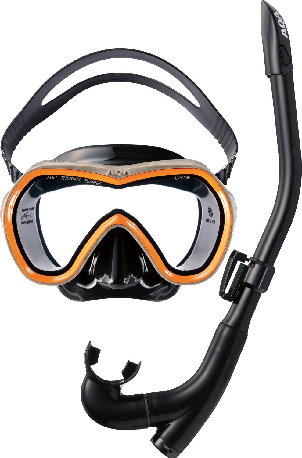 エーキューエー AQA KZ-9108 オルカソフト & カナールフレックス SP KZ9108 マリン スノーケリング専用 UV カットレンズマスクとスノーケル時にブレにくく顎が楽なドライアッパー付きシリコンスノーケルのセット。高品質シリコン製、スノーケリング専用 UV カットレンズマスク。
