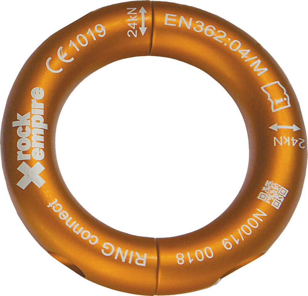 ロックエンパイアー ROCK EMPIRE ロックエンパイアー Rock empire リングコネクト REZRC053 OR アウトドア 分離式のオーリング。付属の6角レンチで2ヶ所のネジをゆるめる事で分離させる事ができる。全方向への強度が24kNあり、普通のコネクターの設置に不向きな場所への取付や、通常のオーリングでは接続できない末端処理されたランヤードやウェビングに取り付けできる。