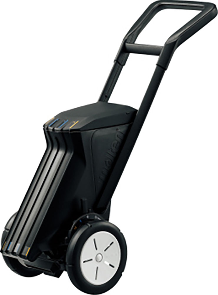 素材:タンク・ハンドル・フタ/ポリプロピレン、シャーシ/ナイロン、タイヤ/EVA樹脂、車軸/スチール、使用ライン材/炭酸カルシウム