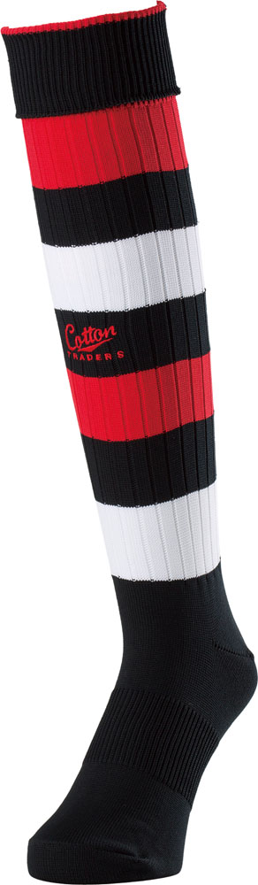 セプター SCEPTRE ラグビー ロングストッキング ブラック×レッド×ホワイト 25-28cm 靴下 ソックス 部活 練習 トレーニング コットントレーダース コットントレーダーズ CS23 Cotton TRADERSブランドのソックス。ゲーム用ソックス。シューズの中でソックスが滑らない仕様です。