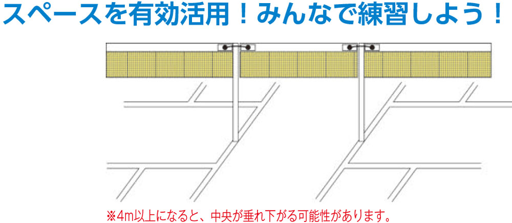 ご注意:支柱間が4m以上になると、中央が垂れ下がる可能性があります。