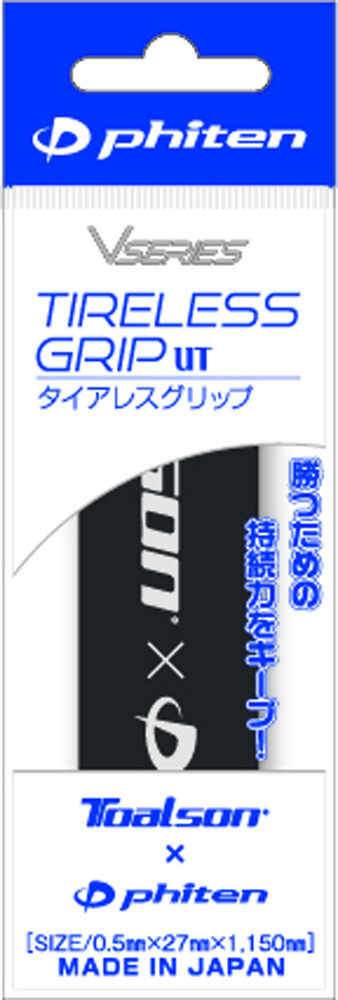 トアルソン Toalson タイアレスグリップ UT 1ETG2314 テニス テニスメーカーTOALSONと健康を支えるボディケアカンパニーのファイテン社とのコラボレーション商品です。ULTRA GRIPの心地よいソフトフィット感とグリップ力をそのままに、最後の1球まで持続力をキープする、勝ちにこだわる選手のために開発した商品です。