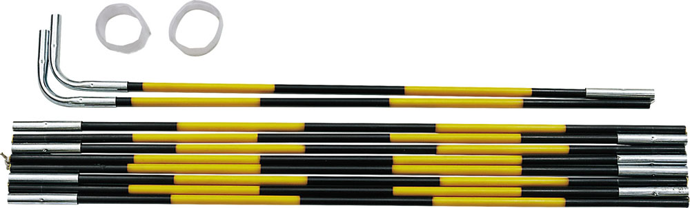 センターネットに簡単装着。コンパクトに折りたたみ収納できる。コントロールトレーニング用ゲートポール。