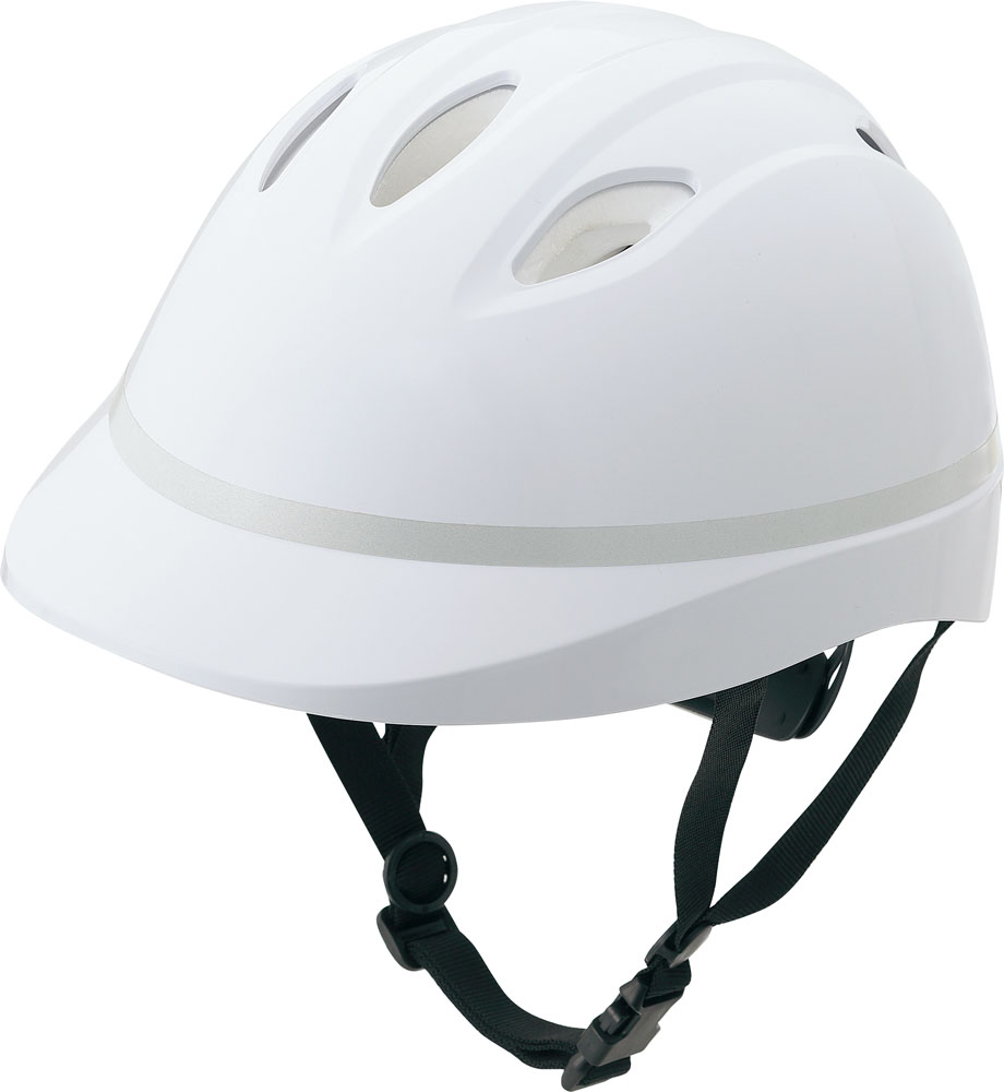 仕様:ワンタッチ式アゴバンド アジャスター付き、通気孔あり、反射テープ付き