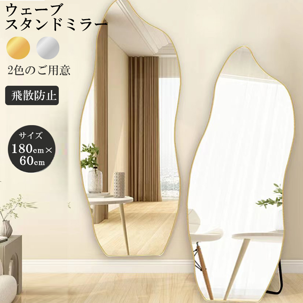 | 商品説明 | 話題の韓国デザインのウェーブミラー。丸く仕上げ、安全性やインテリア性も抜群です。リビング、寝室、和室、洋室、店舗用などどこでもお使い頂けるおしゃれな全身ミラーです。 全身をしっかり移す大きいサイズのアルミ合金フレームデザイン姿見鏡です。 毎日見るものこそこだわりたい、お部屋に置くだけでインテリアにもなるおしゃれなミラーです。 立掛け、スタンドの2WAYスタイルとなっており、使わないときには折り畳むことができます。本体重さ約12kgなので女性一人でもお部屋からお部屋への移動がラクラクと持ち運ぶことができます。 家庭用の姿見だけではなく、ダンス用のレッスンミラー、ヨガ、筋トレ、野球やテニス、空手など様々なシーンに使える万能ミラーです。 もちろん鏡は置くだけではなく、お部屋を明るく広く見せる効果もあります。 鏡のゆがみ防止のため、しっかりした4mm厚みのあるミラーを使用しており、映り込んだ物体の色・実現をそのまま鮮明に再現するミラーです。 フレーム角を丸く仕上げ、安全性やインテリア性も抜群です。リビング、寝室、和室、洋室、店舗用などどこでもお使い頂けるおしゃれな全身ミラーです。 | |||||