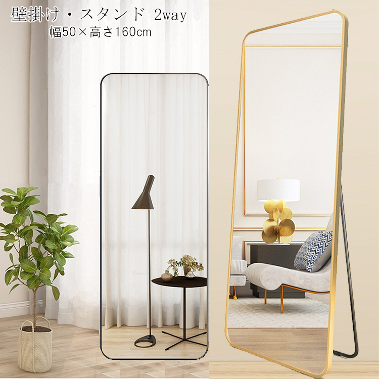 フレーム角を丸く仕上げ、安全性やインテリア性も抜群です。リビング、寝室、和室、洋室、店舗用などどこでもお使い頂けるおしゃれな全身ミラーです。 |