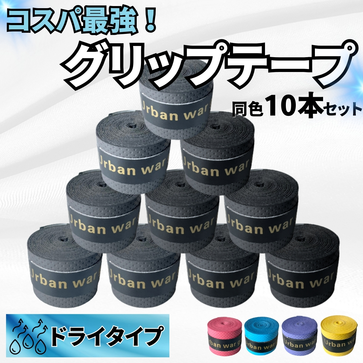 グリップテープ ドライタイプ テニス 10本入り バドミントン ラケット 太鼓の達人 マイバチ バット ロードバイク オーバーグリップテープ Makbes