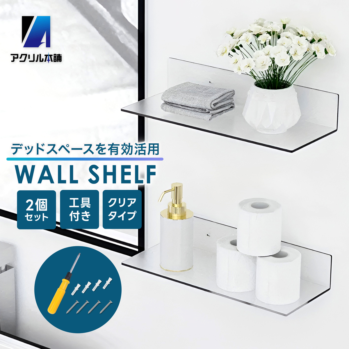 アクリル本舗 ウォールシェルフ 2セット 壁掛け棚 ウォールラック 壁掛けラック 棚 ラック 壁