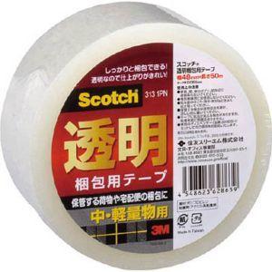 ★中・軽量物向け梱包用透明テープ■メーカー:3M (Scotch)■品番:313 1PN■テープ寸法:幅48mm×50m巻き■入数:1巻■テープ厚:0.065mm■材質:基材=PPフィルム、粘着剤=アクリル系