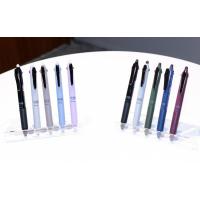 ● ボディデザインは、現行の4色ボールペンフリクションボール4と同等の軸径に抑え、持ち運びしやすいシルエットを実現しました。カラーバリエーションは、定番のブラックをはじめ、モダンなニュアンスカラーなど、計10色をラインアップしています。手帳やノートなど細かい箇所への書き込みに適した極細書きに適したフリクションインキ0.38mmと、油性インキは極細0.5mmの組み合わせと、一般筆記に適した太さのフリクションインキ0.5mmと油性インキ0.7mmの2種類をラインアップしました。