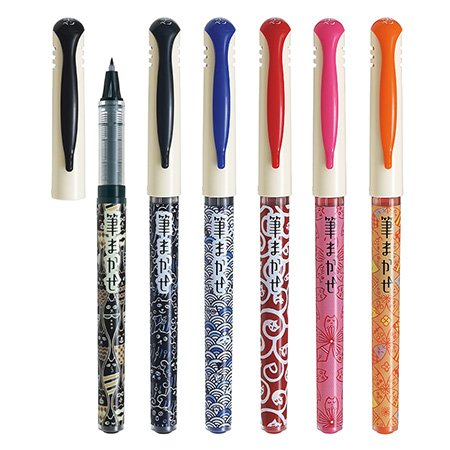 ●筆まかせはサインペン感覚で筆文字ならではの「トメ、ハネ、ハライ」が簡単に表現でき、文字に強弱を持たせることができる硬めのペン先が特長のカラー筆ペンです。