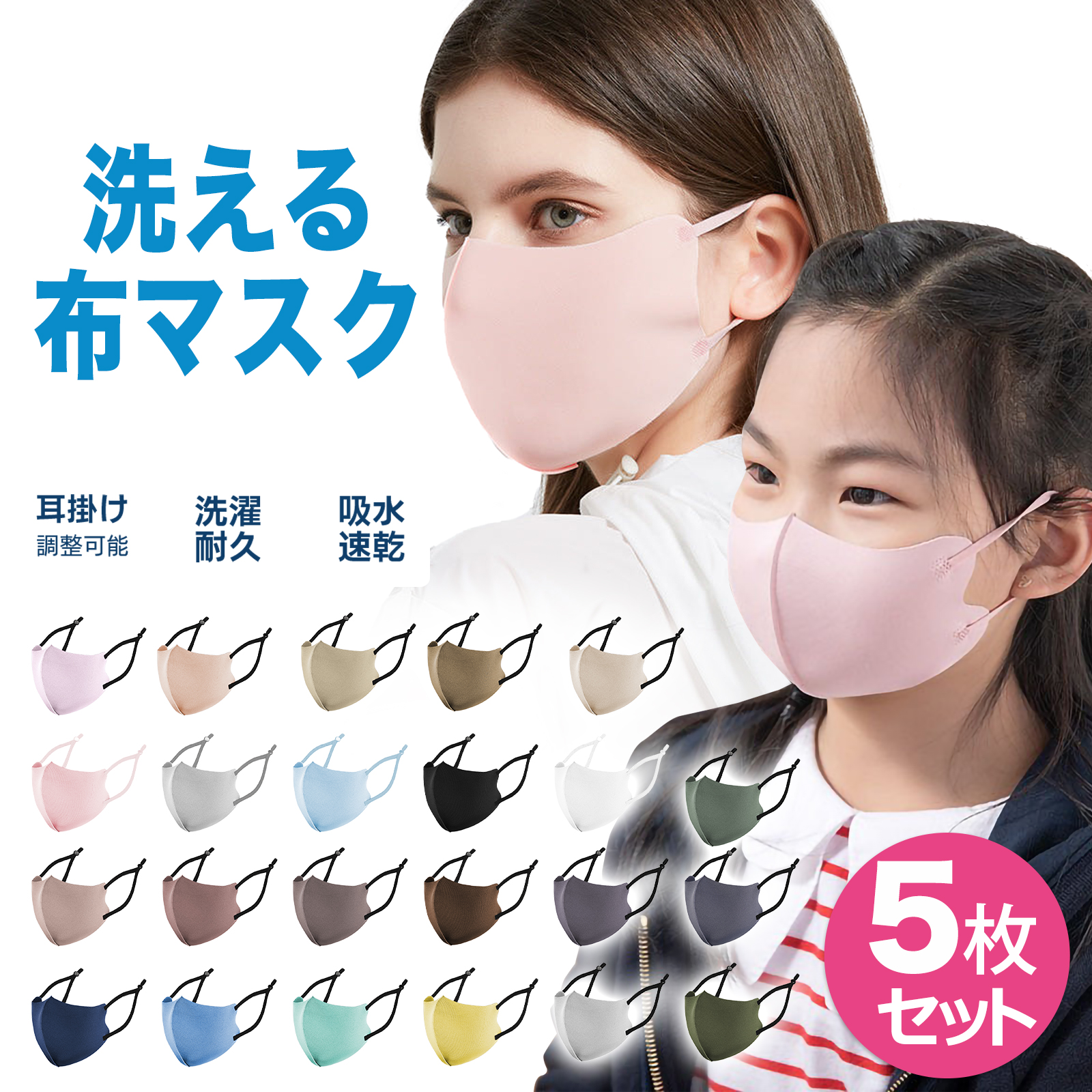 布マスク マスク 子供 洗える さらさら 薄手 秋冬用 蒸れない 子供マスク 大人用 uvカット 5枚セット 耳紐調整タイプ 紐タイプ 大きめ 給食用 ポイント消化 爆買