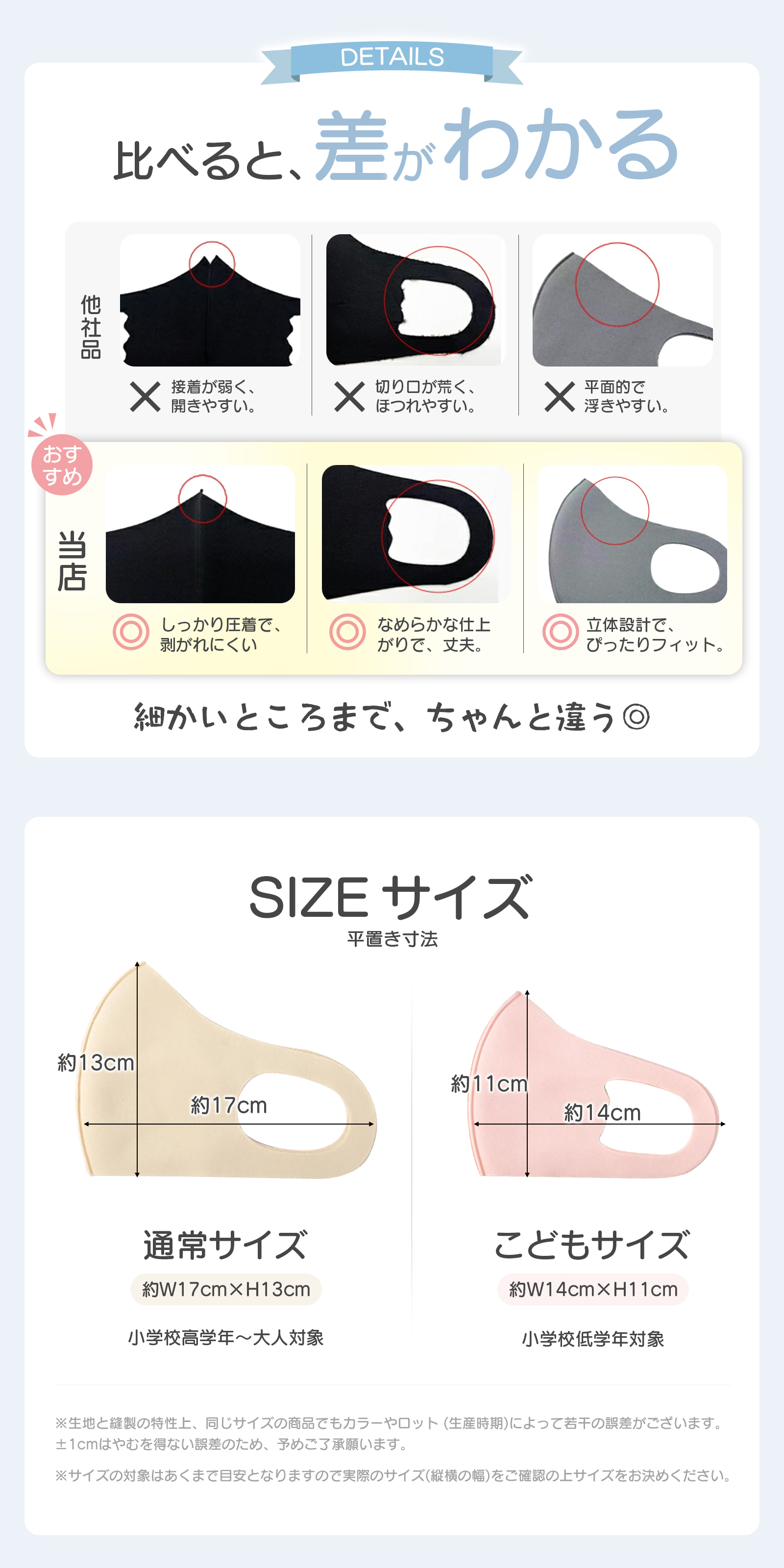 立体型タイプで肌触りが優しくて、軽くてフィット感抜群。