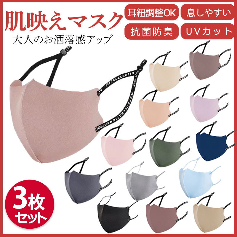 マスク 夏用 接触冷感 冷感 立体 血色マスク 紐マスク 男女兼用 蒸れない 3枚組 大人サイズ カラー 洗えるマスク 布マスク くすみ オシャレ おしゃれ 3D 大きめ