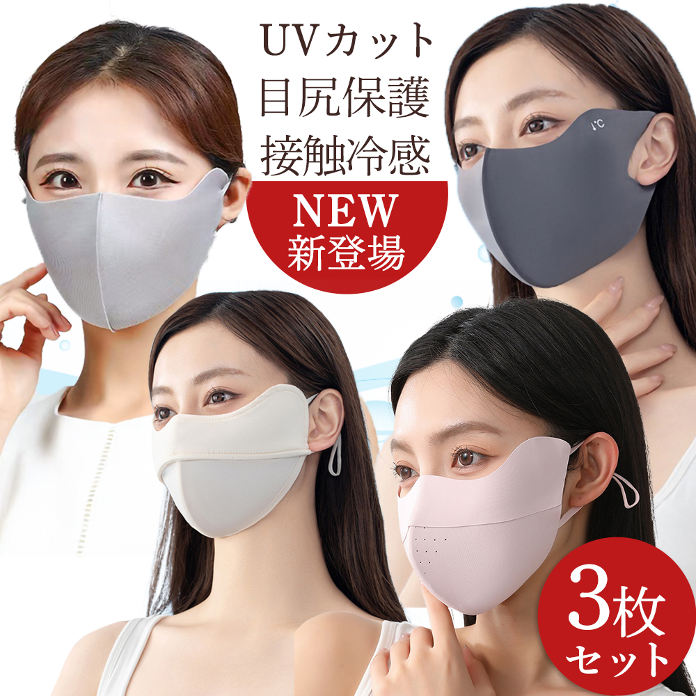 UVマスク フェイスカバー 接触冷感 目尻保護 鼻オープン 日焼け対策 息が楽 立体 UVカット ランニング フェイスマスク 3枚セット ポイント消化 送料無料 爆買