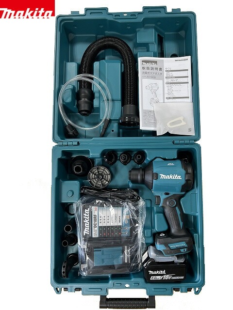 ■マキタ 18V6.0Ahエアダスター AS180DRG 青ケース付き AS180DZ本体+バッテリーBL1860B(1個)+充電器DC18RF+ノズル・アタッチメント各種付き+ケース