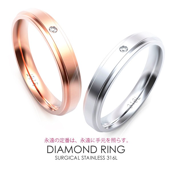 指輪 ステンレス リング ダイヤモンド入り ペアリングに レディース メンズ ウラノス