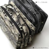 セカンドバッグ 送料無料 メンズ ダブルファスナー 人気 パイソン柄型押し 男性用 紳士用 パイソン柄 大容量 多収納 蛇 ヘビ パイソン BOX ボック