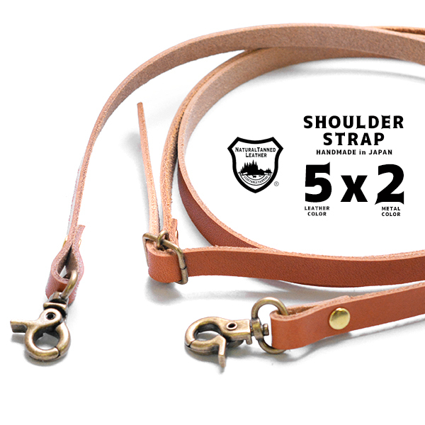 栃木レザーのフルベジタブルタンニンレザーを使った平らなショルダーストラップ。
