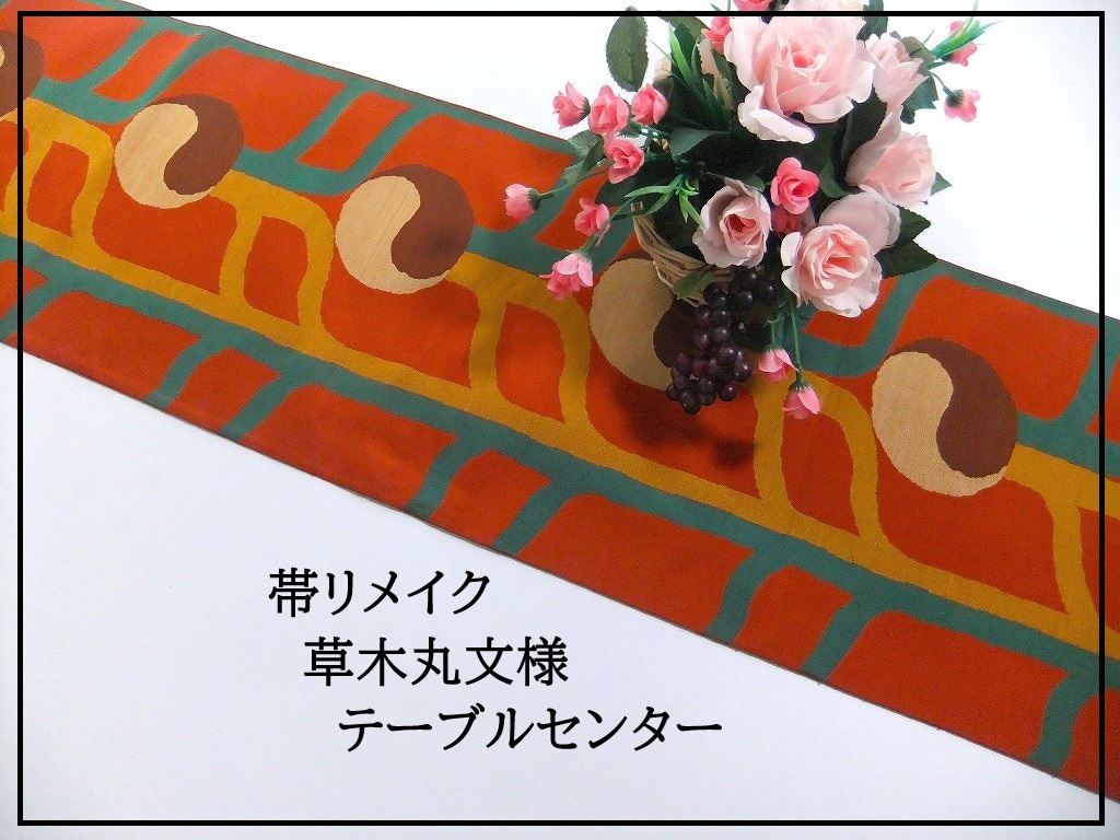 【(16)2204】139cm/草木丸文様/テーブルセンター/和風・帯リメイク/日本のお土産