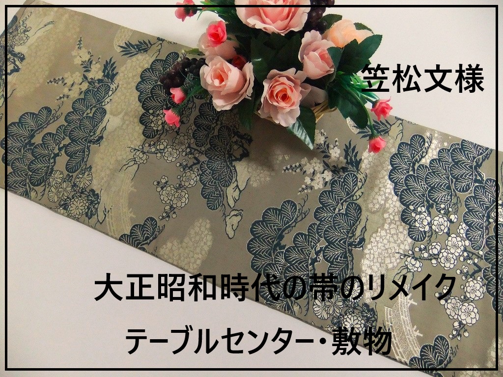 【(16)2210】91cm/アンティーク帯・笠松文様/テーブルセンター/和風・帯リメイク/日本のお土産