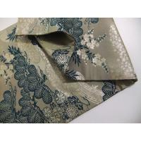灰色地に笠松と小花・橋の文様で笠松部分は紺色ではなく青緑の色合いです。