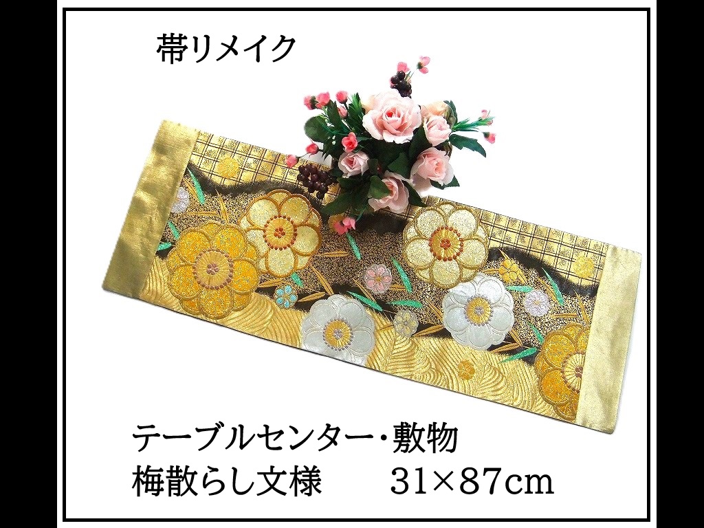 【(16)2341】31×87cm/テーブルセンター・敷物/梅散らし文様・帯リメイク/日本製