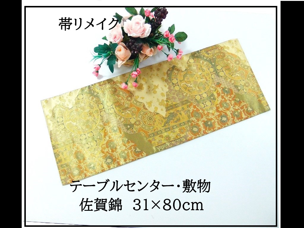 【(16)2387】31×80cm/佐賀錦・絵皿吉祥文様/テーブルセンター/和風/帯リメイク/日本製