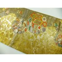 金糸に鳳凰や御所車、蝶などの吉祥文様です。裏側も綺麗な金糸に花文様ですので両面使用できます。