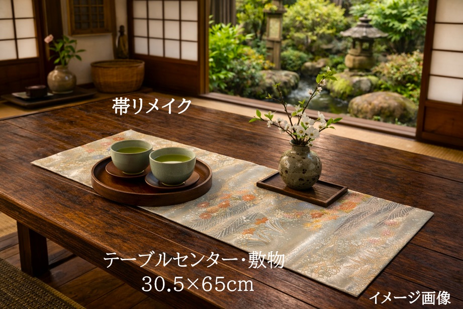 【(16)2444】約30.5×65cm/小花文様/テーブルセンター/和風/帯リメイク/日本製