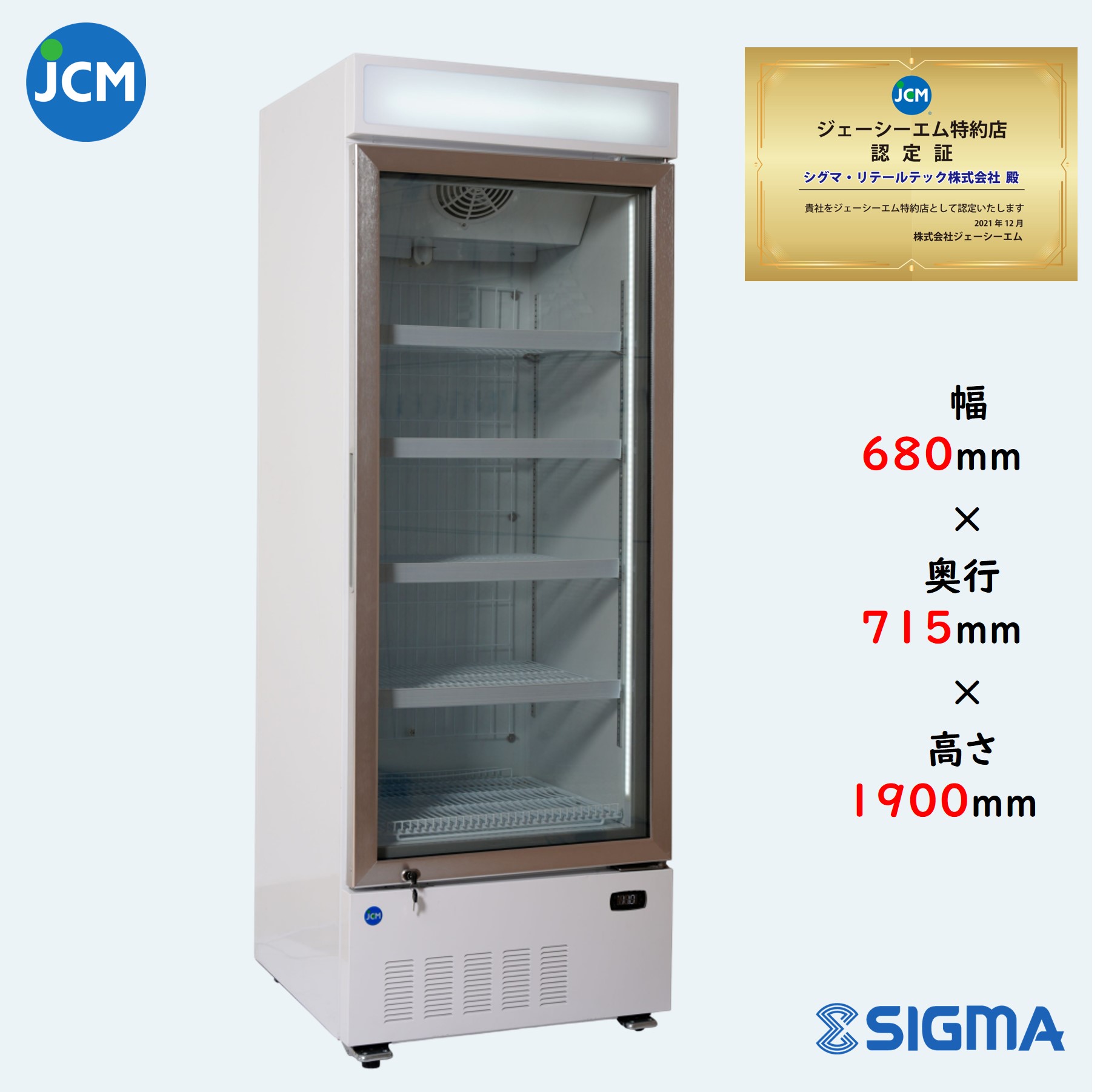 JCMCS-380H 冷凍ショーケース 380L 1ドア タテ型 タイプ 業務用 JCM LED照明 電照POP付き 軒先・車上渡し 送料無料