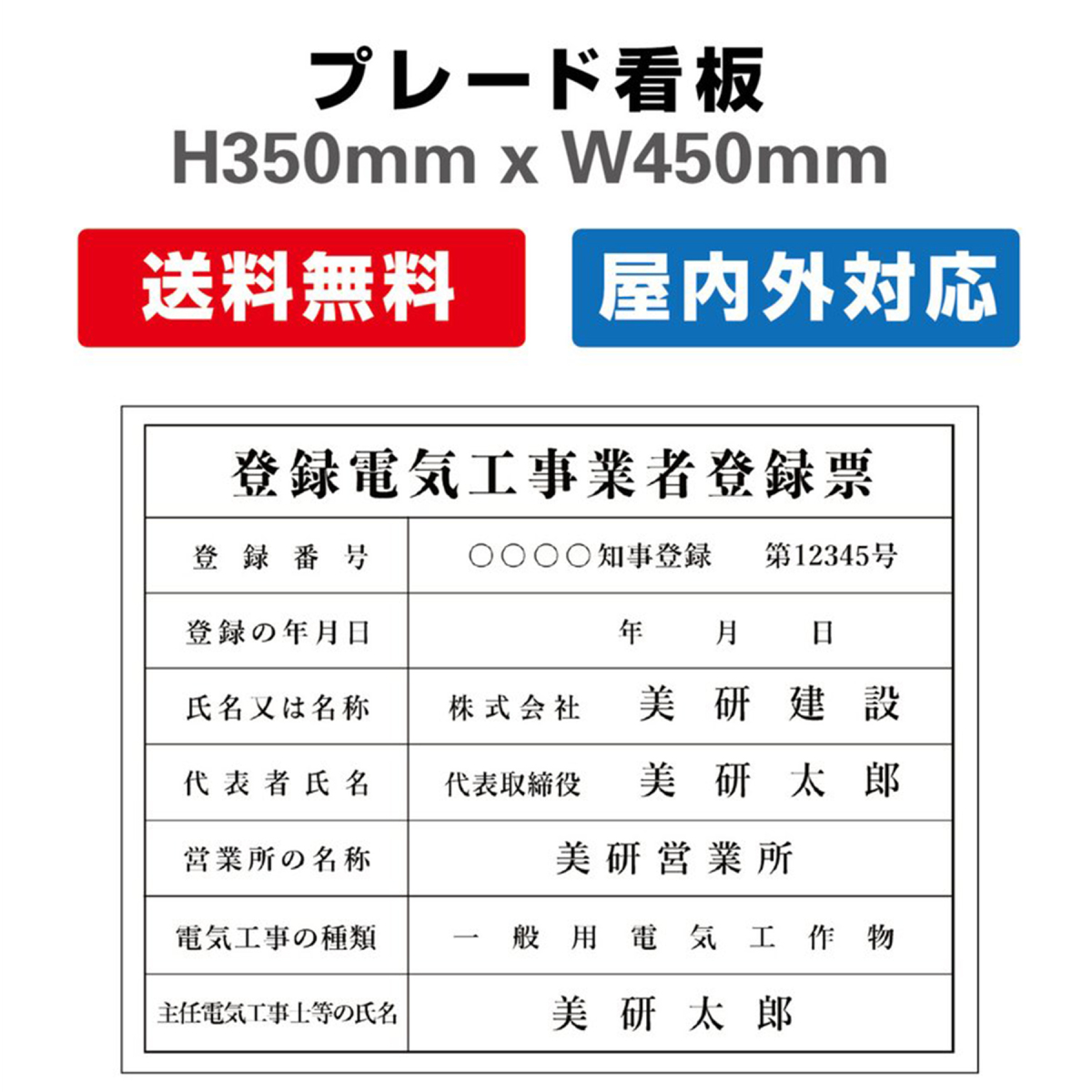 登録電気工事業者登録票 屋外用 対候性 内容印刷込み プレート看板 ◎H350×W450mm