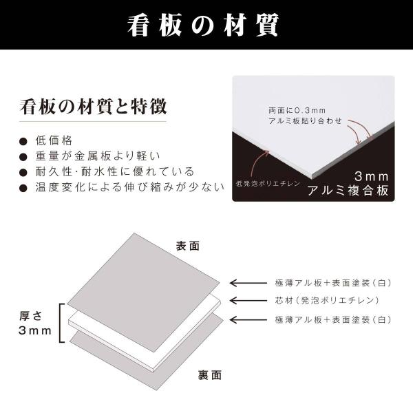 W230mmxH300mm 厚さ:3.0mm裏面テープ加工無料送料無料3mmアルミ複合板屋外広告で最も多く使用されている耐水性に優れた材質です。アクリル製品と比べ割れにくく、反りにも強い性質です。発送について、注意:メール便は、ポスト投函の為、お届け先ご住所が、間違いのないようにお願致します。お客様ご自身で住所間違えて投函した場合は、再購入お願い致します。住所不明で再送となった場合は、再送料300円を別途を振込み頂きます。