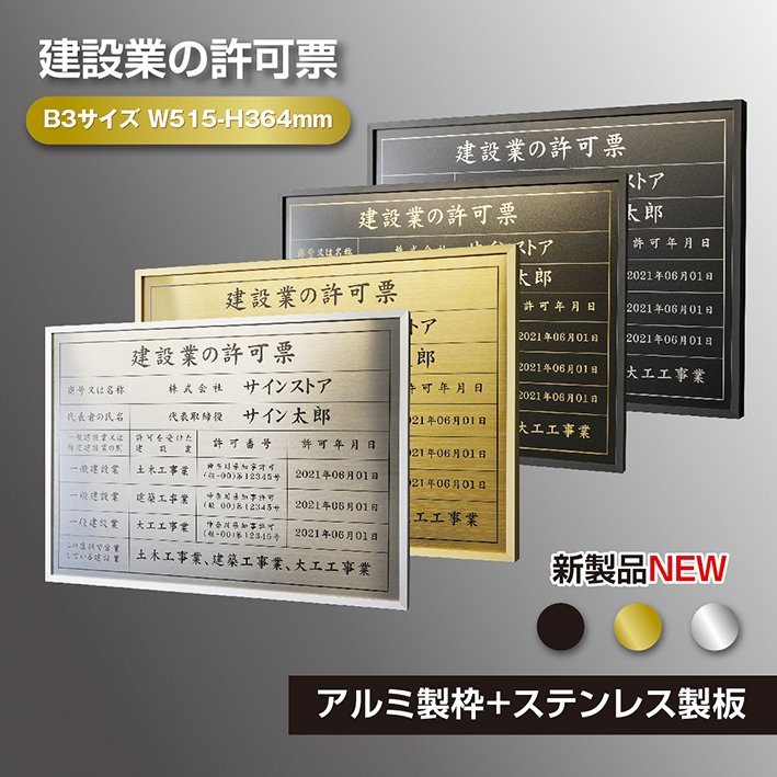 建設業の許可票 看板 標識 ステンレス アルミ 業者票 プレート H520×W370×D35mm