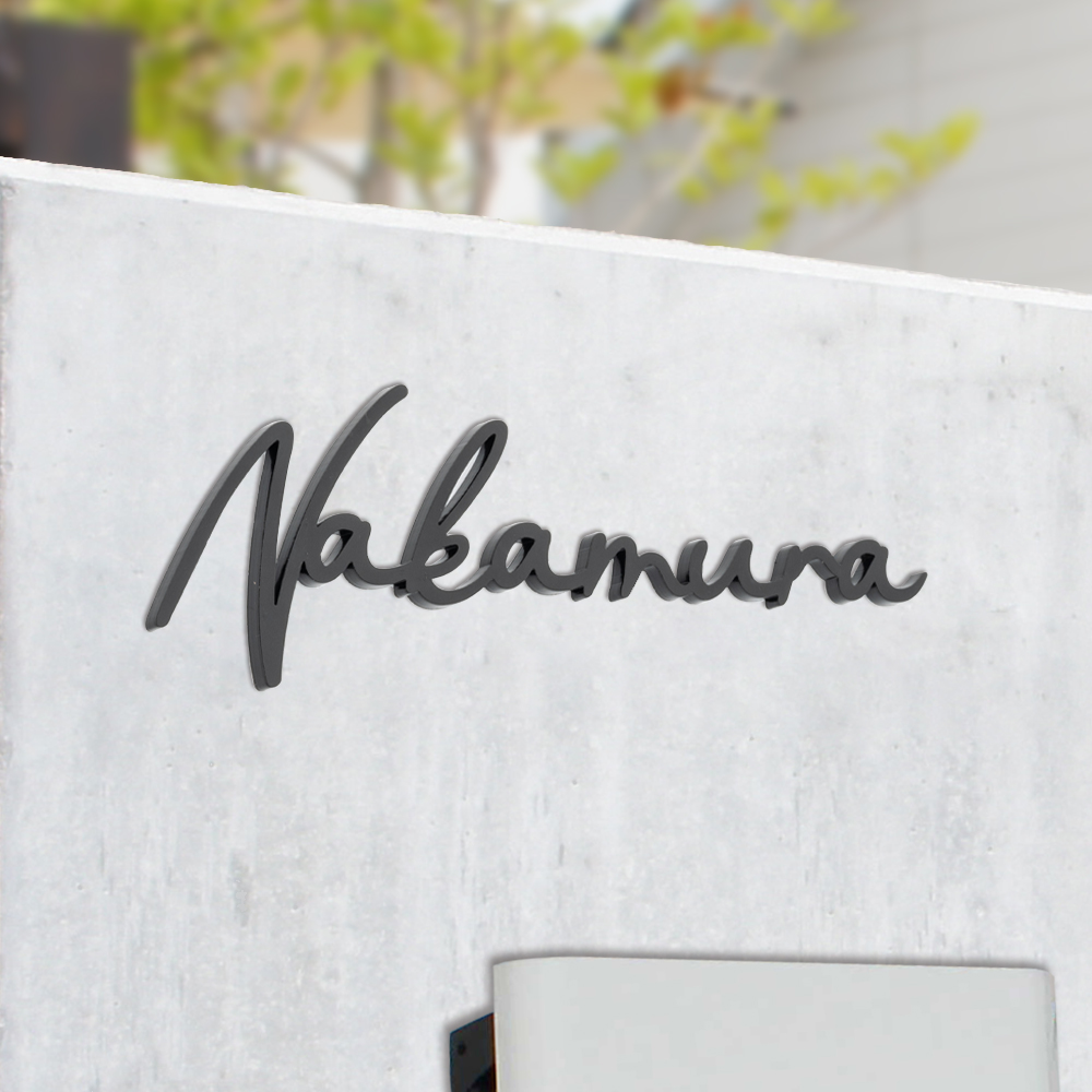 表札 ポスト 筆記体 黒アクリル表札 英語 オシャレな手書き風 アイアン風 可愛い 門柱対応 マンション オスポール つなげ切文字 玄関 日本産 gs-nmpl-1015b