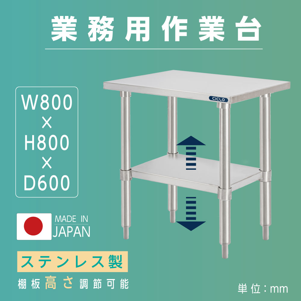 ステンレス製 作業台 業務用 キッチン 調理台 日本製造 二段棚 W80×H80×D60cm 調理作業台 置棚 作業台棚 ステンレス棚 厨房 作業テーブル キッチンラック