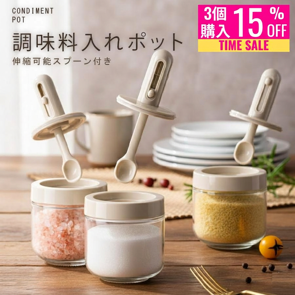 【湿気から守る調味料ポット】味の決め手のスパイスの鮮度を保ち、おいしく作れる調味料ポットです。塩、砂糖、胡椒、だしの素、七味、薄力粉、茶葉、コーヒー粉など。