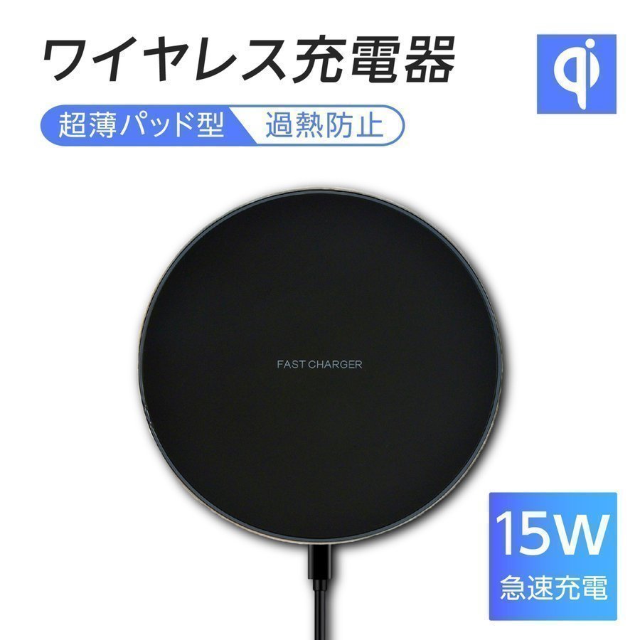 15W急速充電 ワイヤレス充電 スマホ充電 超薄パッド型 置くだけ ケース付き充電 軽量 コンパクト 安全保護 異物検知 旅行 出張 xd-722b