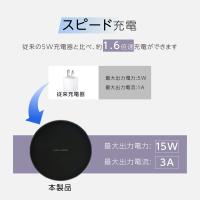 【最大15Wスマホ急速充電/置き型で簡単】最大15W出力の急速充電に対応するQiワイヤレス充電器。置くだけで充電できて、スマホへのケーブルの抜き差し不要。しかもスピード充電で快適です。