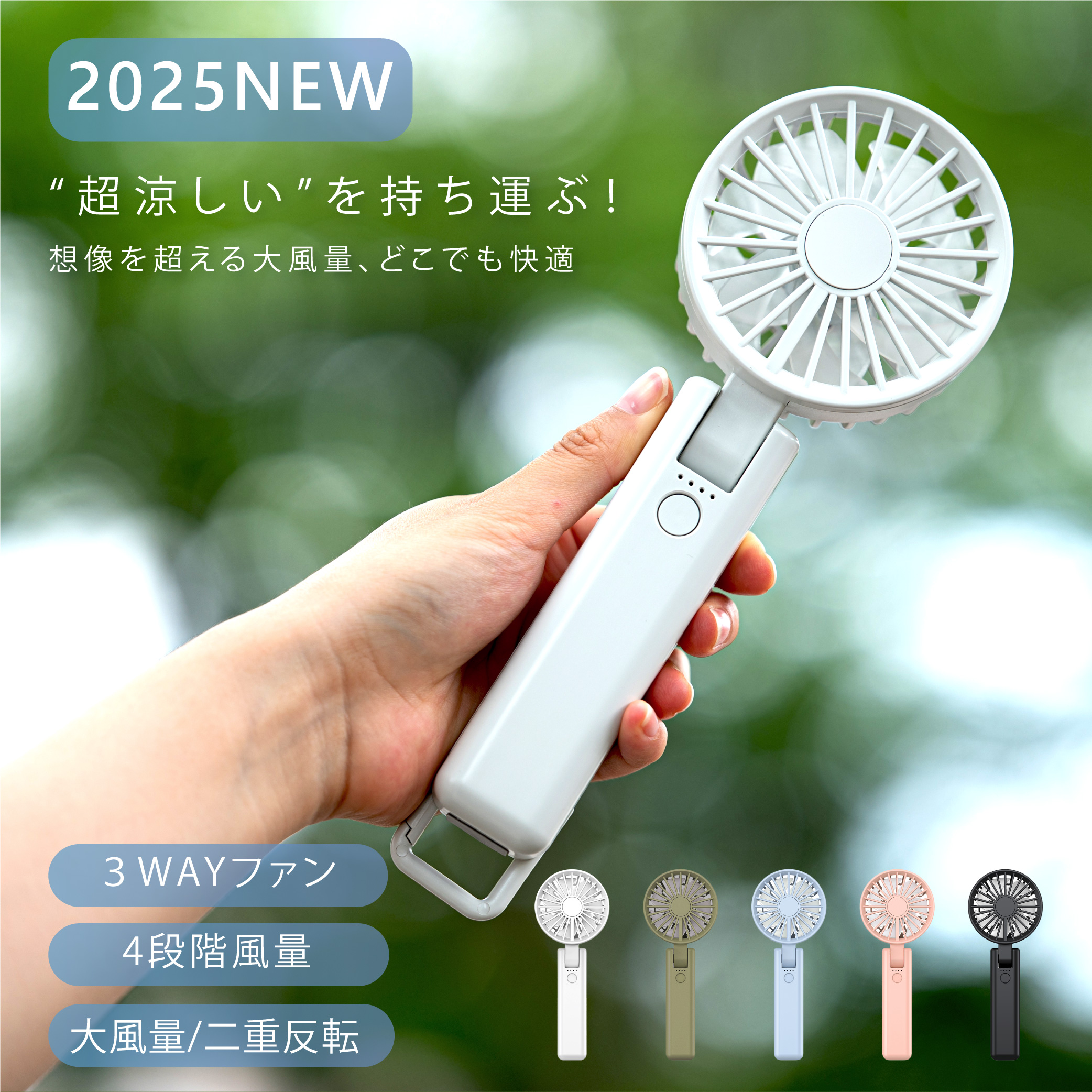 【3wayファン&大風量】2025年7月より新仕様3wayファンが登場♪プロペラ飛行機の推進力として活用される二重反転ファンをコンパクトにしてみました。大きな5枚、小さな7枚がつくる大風量!前後で羽根が逆回転することで効率よく大風量を実現。単体ファンの約1.5倍の想像を超える大風量です。コードレスなのでハンディ扇風機、ネックファン、卓上扇風機の3WAY仕様で軽くて、手軽さが一番の魅力!