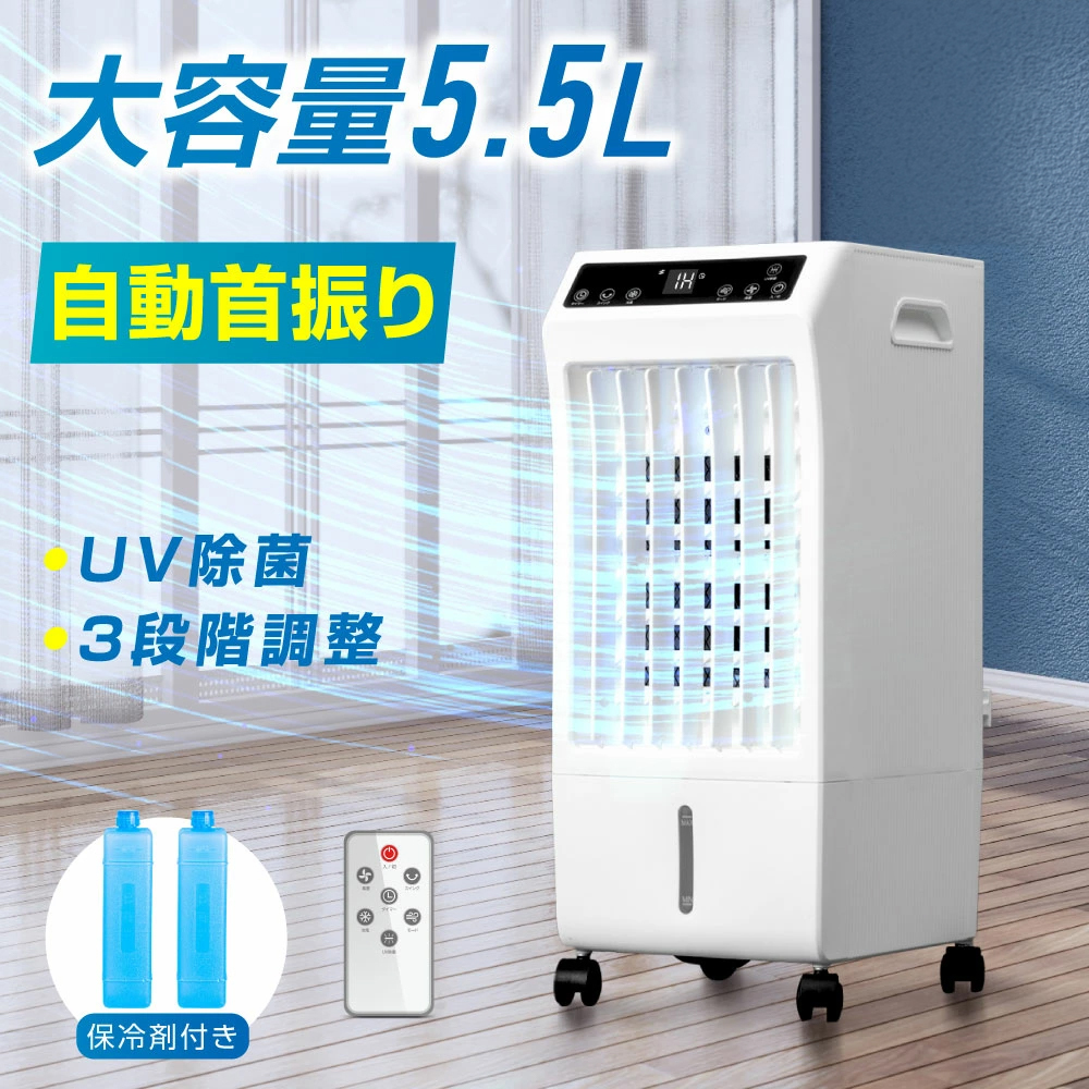冷風機 扇風機 冷風扇 冷風扇風機 UV除菌機能 羽なし 扇風機 熱中症対策 水冷ファン 大容量5.5L 保冷剤2個付 風量3段階切替 リモコン キャスター付き xr-ifu02