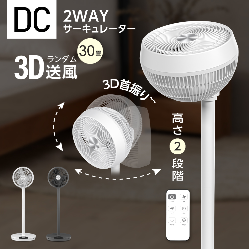 扇風機 リビング扇風機 360°回転 期間セール3000円OFF サーキュレーター dcモーター 静音 12段階風量調節 3D首振り タイマー 衣類乾燥 リモコン収納 省エネ