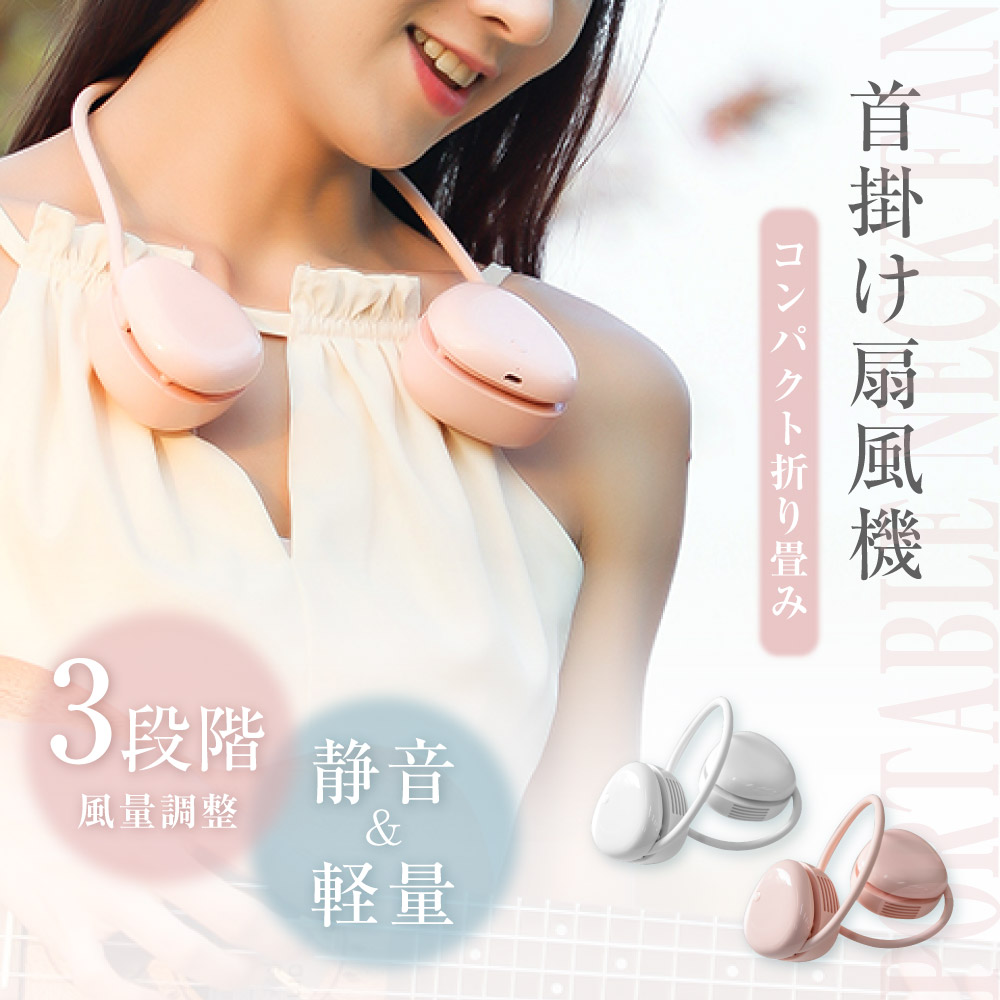 ハンディファン 首かけ扇風機 収納ボックス付き usb充電式 扇風機 携帯扇風機 熱中症対策 新生活 軽量 1600mAh電池 三段階風量 髪の毛を吸い込まない xr-nf154