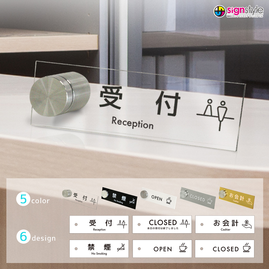 カウンター サイン 卓上サイン 受付プレート 立札 アクリル 透明 クリア ホワイト ブラック ゴールド シルバー レジ ホテル 飲食店 施設 受付 事務所 おしゃれ シンプル OPEN CLOSED 会計 禁煙 カフェ レストラン オフィス
