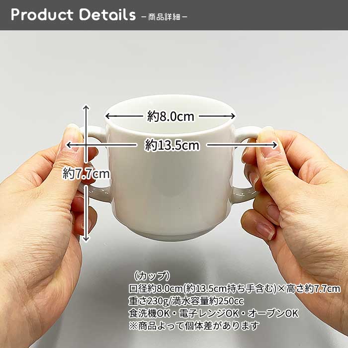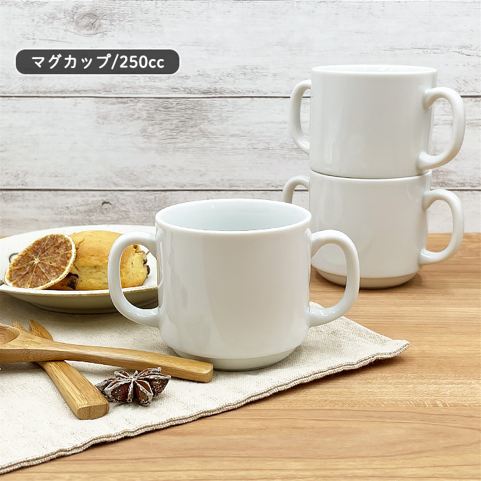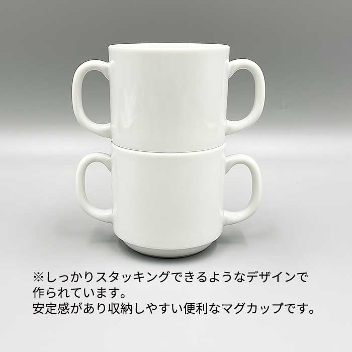 スタッキング両手マグ 250cc 日本製 国産 美濃焼 陶磁器 洋食器 白い食器 白磁 ポーセリンアート 絵付け用 子ども食器